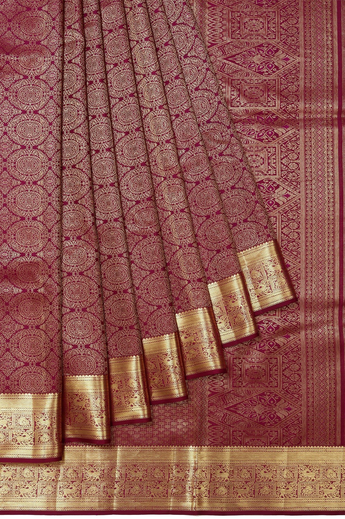 Dark Purple Kanchipuram Silk Saree with Floral Jaal Design