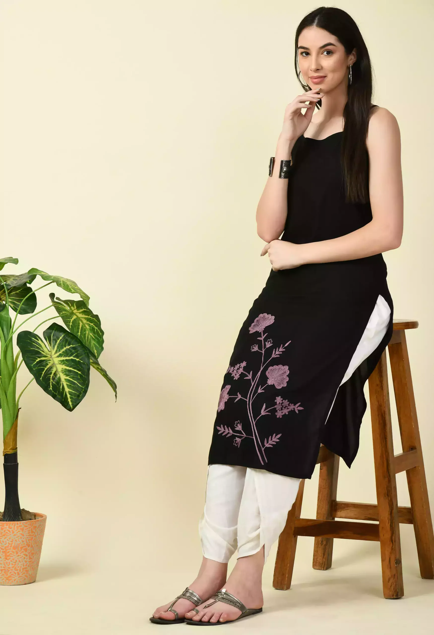 Look ethereal in this Aari work, Kurti, crafted with silk thread.