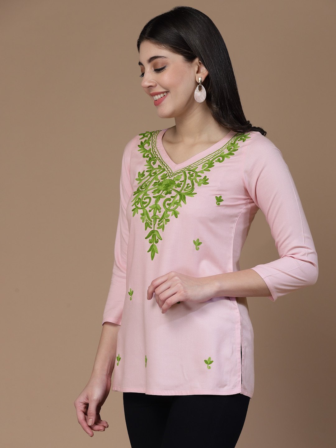 - Embroidery: Kashmiri Aari Using Green Color Cotton Thread