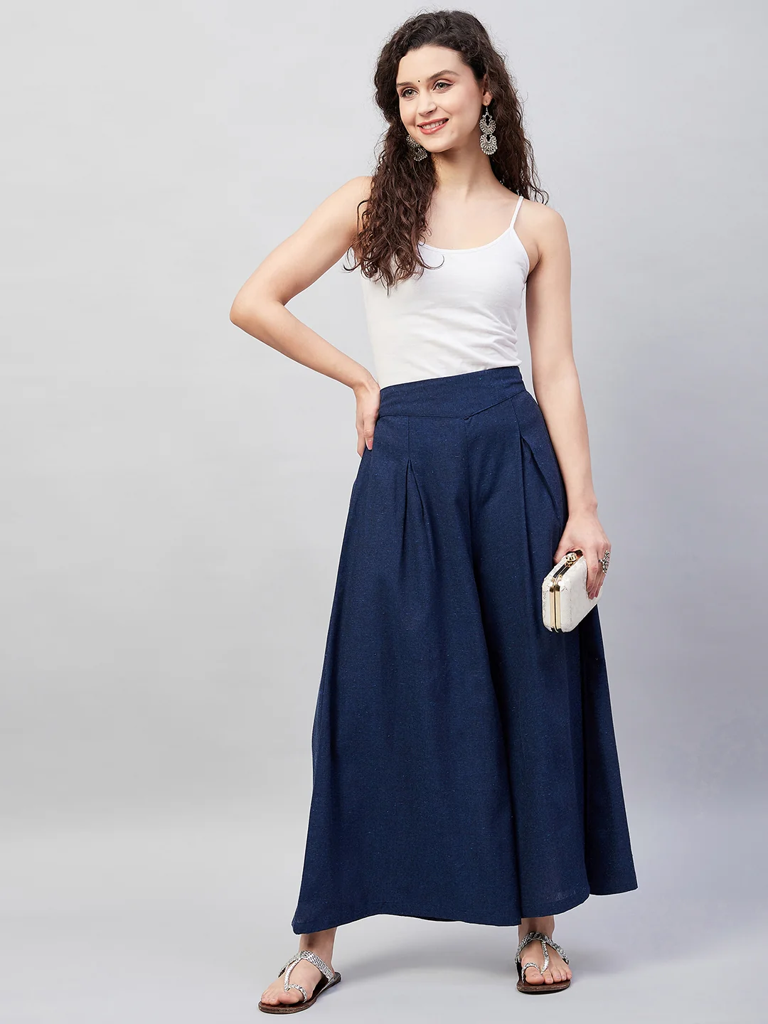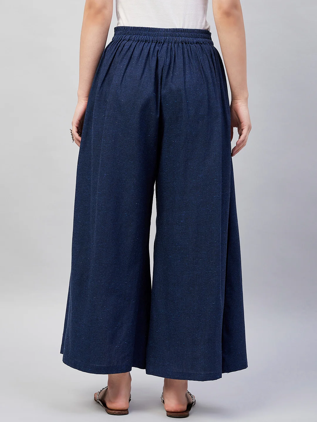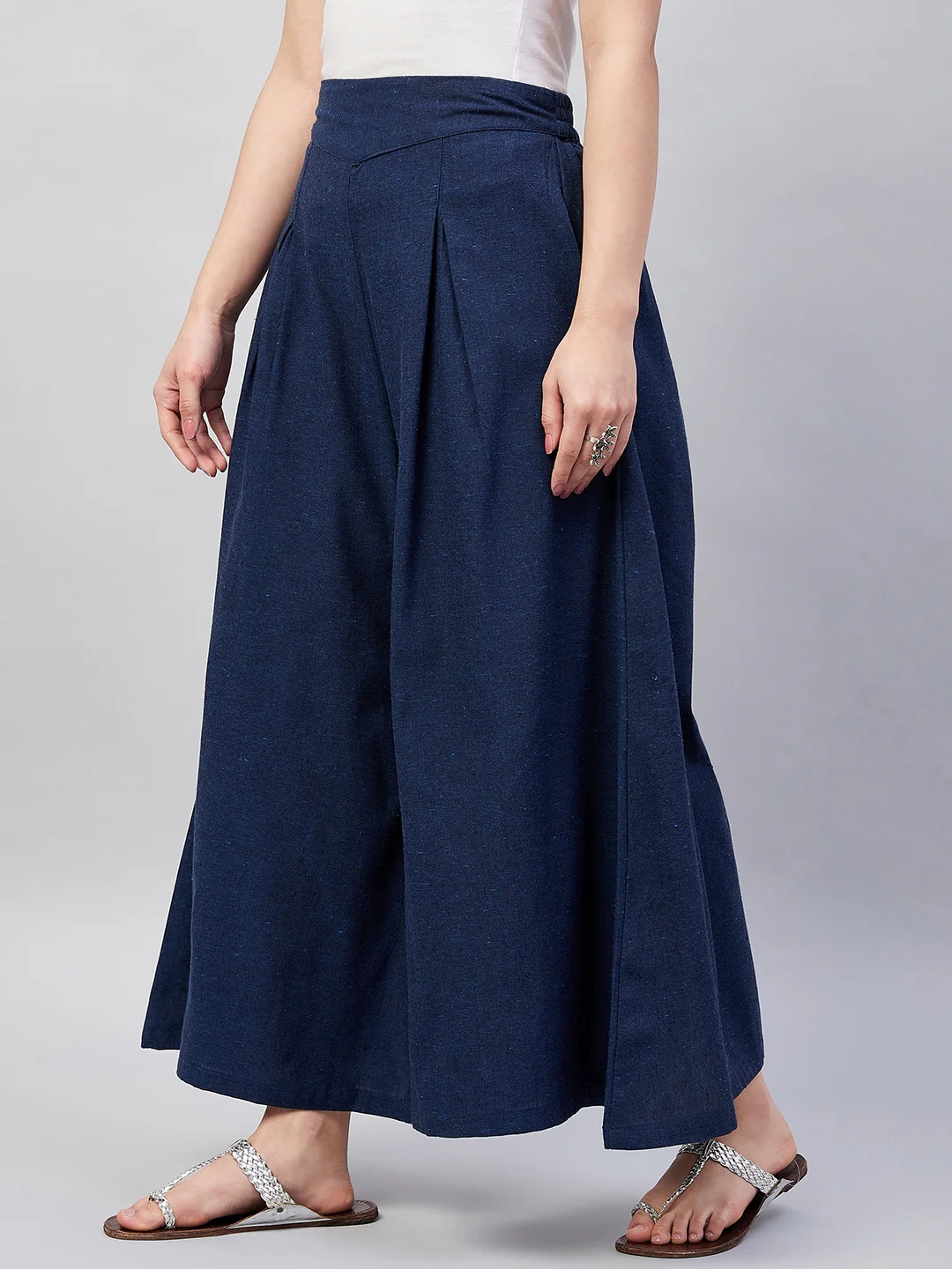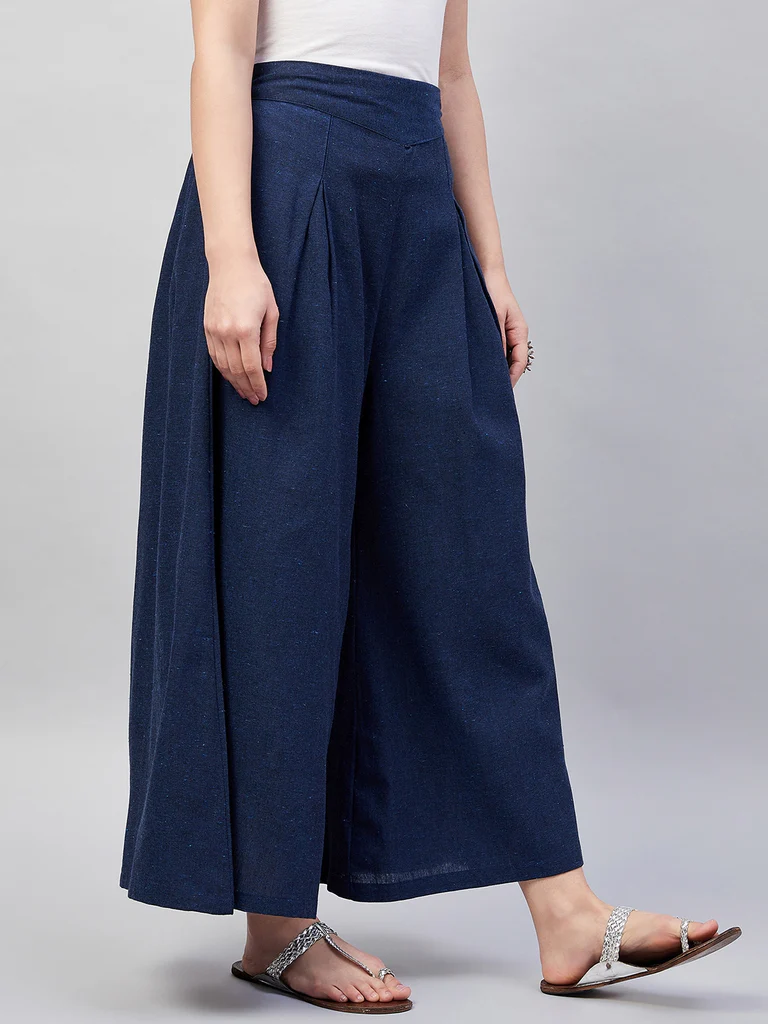Embrace the spirit of summer with this pair of cool, gray-colored handloom palazzos. These cropped palazzos are made with original cotton fabric and showcase pretty front pleats.