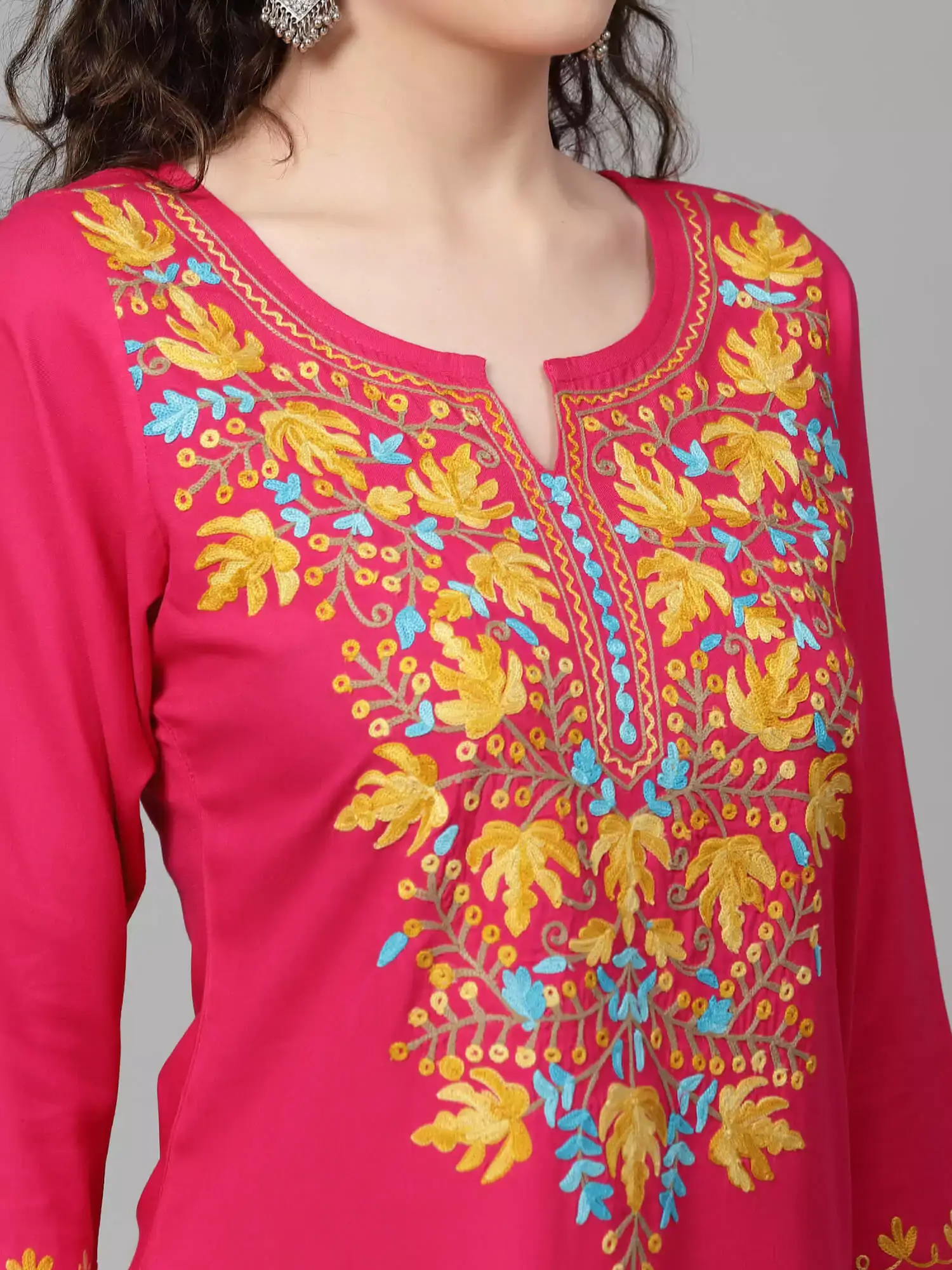 Pink Zari Work Kashmiri Kurti