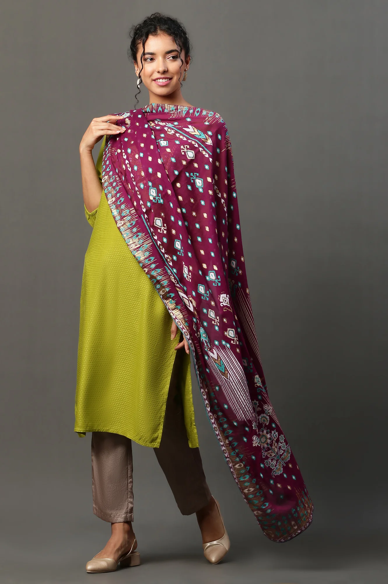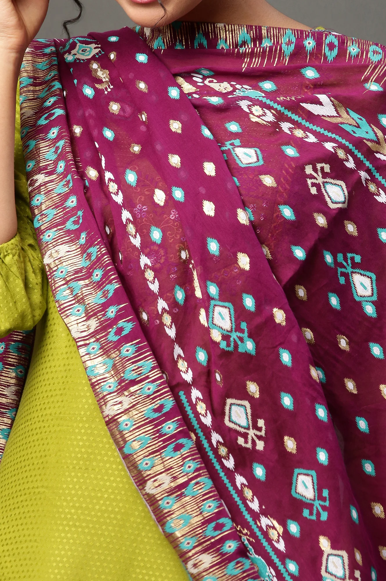 Purple Ikkat Printed Dupatta