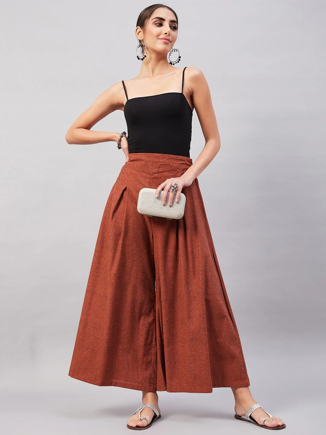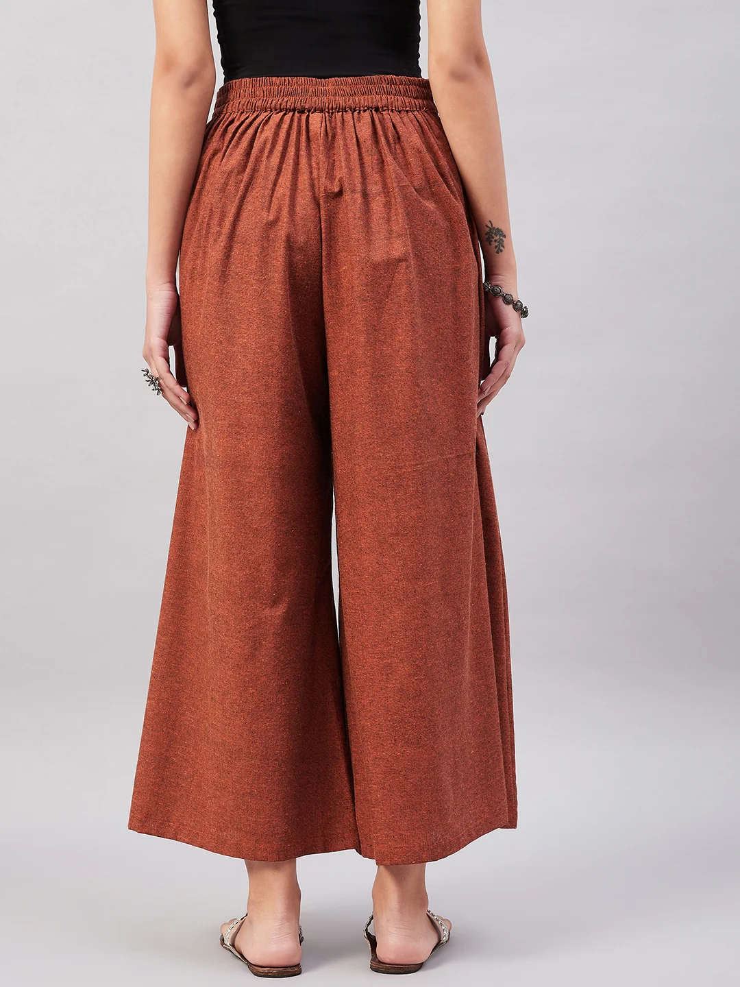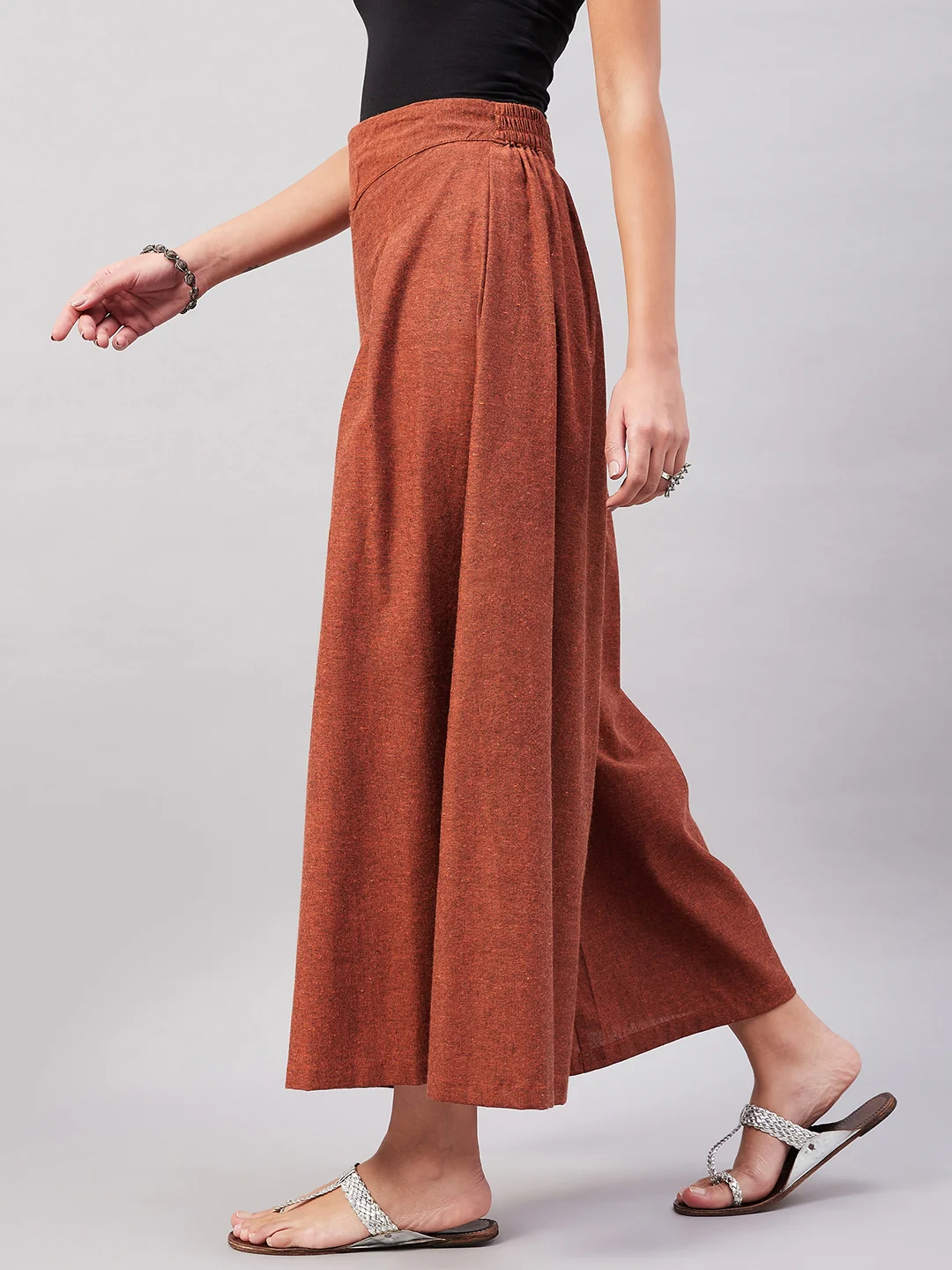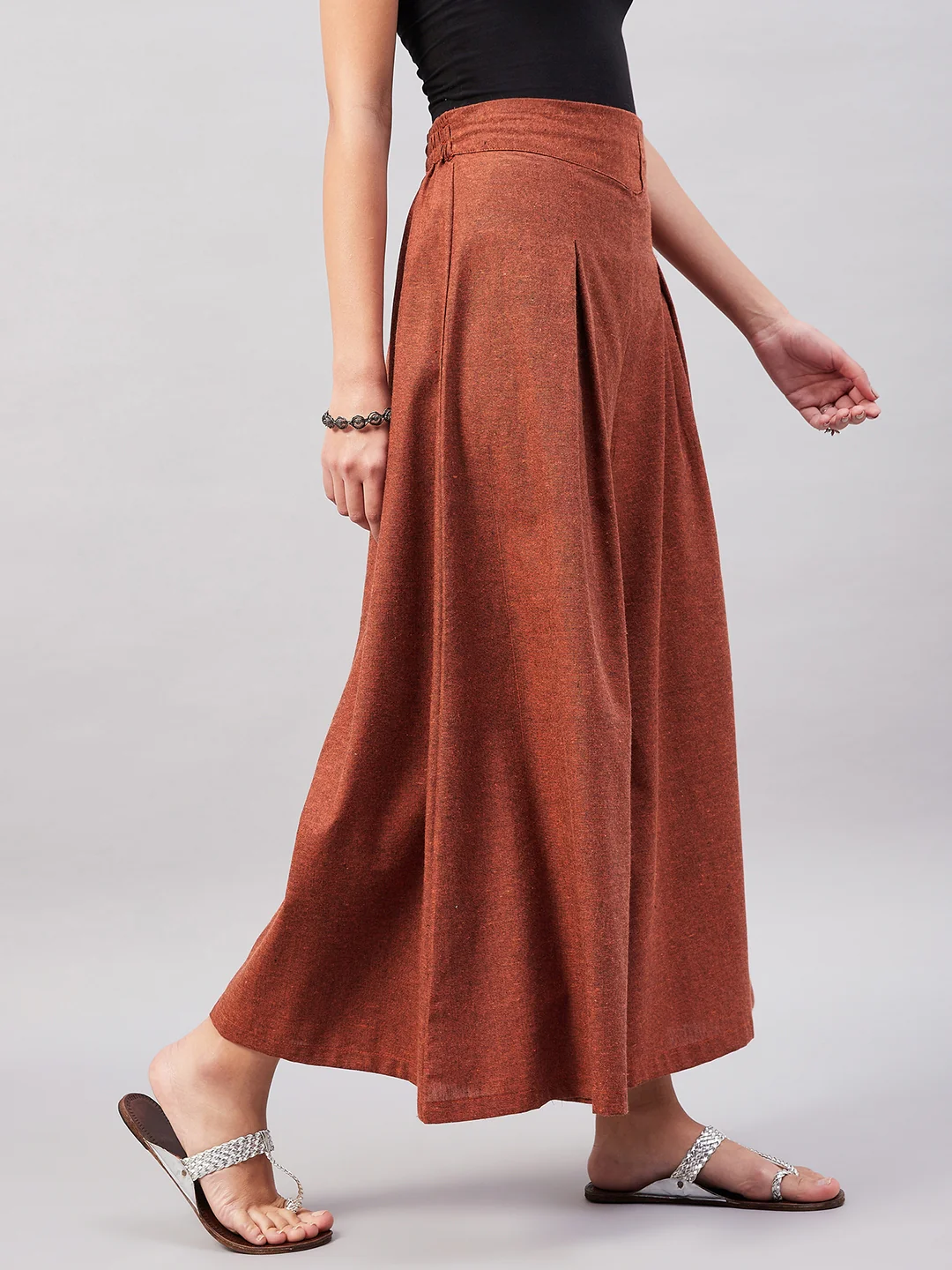 Embrace the spirit of summer with this pair of cool, gray-colored handloom palazzos. These cropped palazzos are made with original cotton fabric and showcase pretty front pleats.