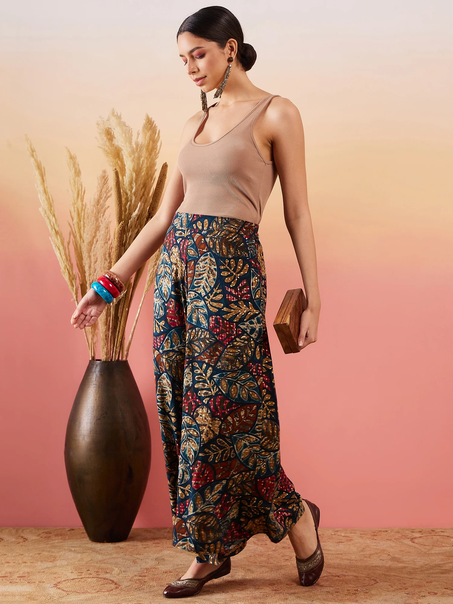 Embrace the spirit of summer with this pair of cool, gray-colored handloom palazzos. These cropped palazzos are made with original cotton fabric and showcase pretty front pleats.