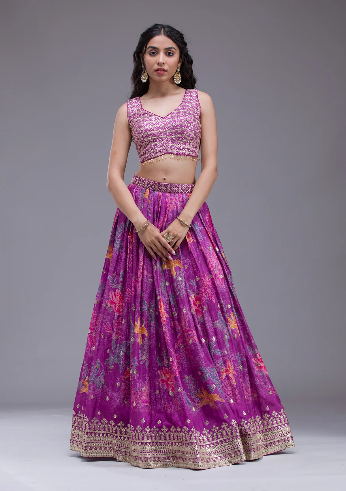 Illuminate any room with the exuberant spark of radiant purple Georgette Lehenga, adorned with dazzling sequins that dance under the lights. This masterpiece blends luxurious georgette fabric with meticulous embroidery to craft a silhouette that’s as breathtaking as it is comfortable. Perfect for those who love to express their vibrant, playful spirit, this lehenga promises to make every twirl memorable!.