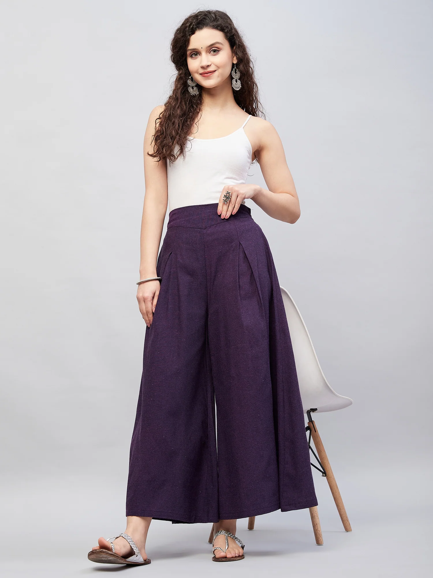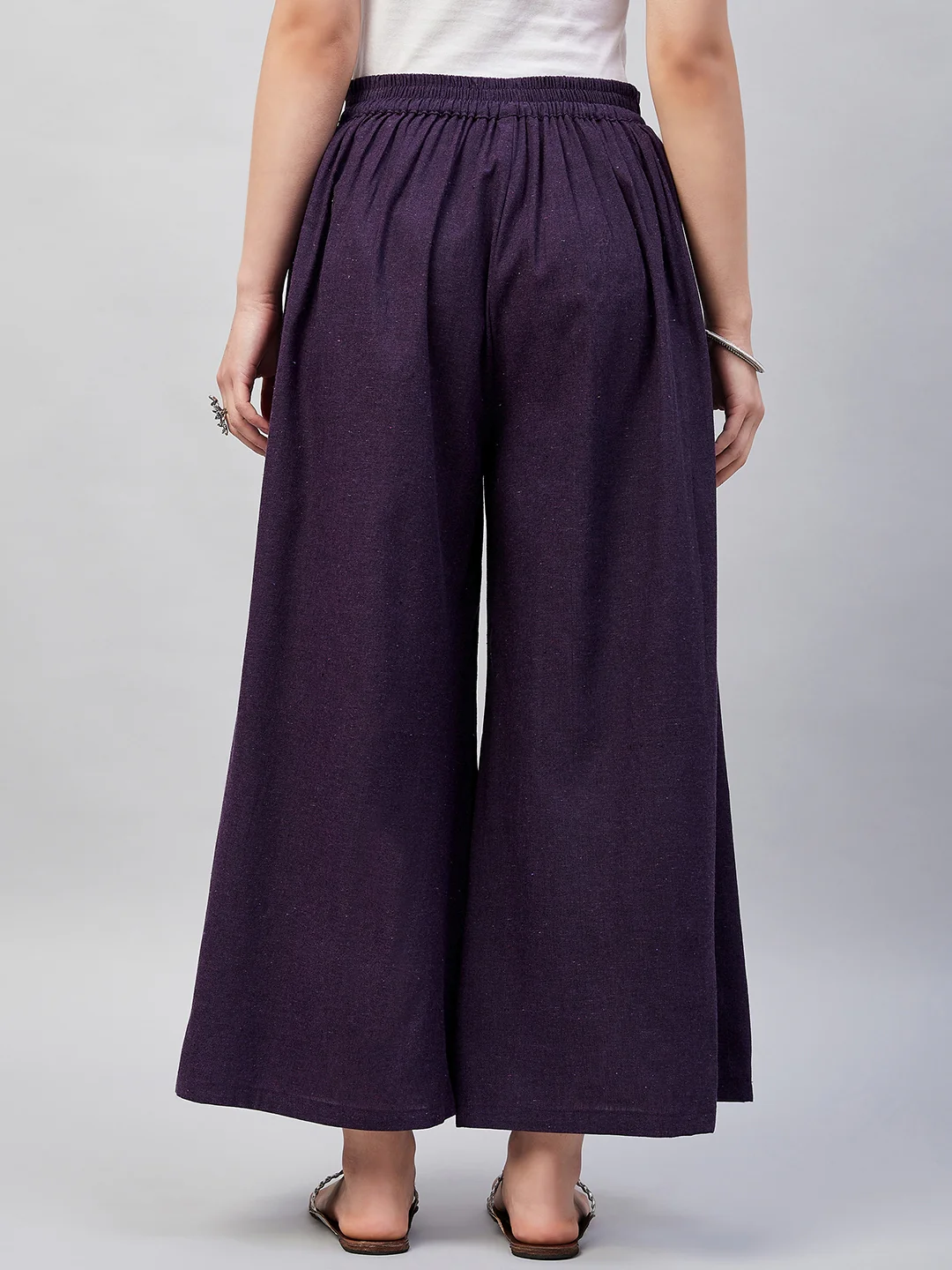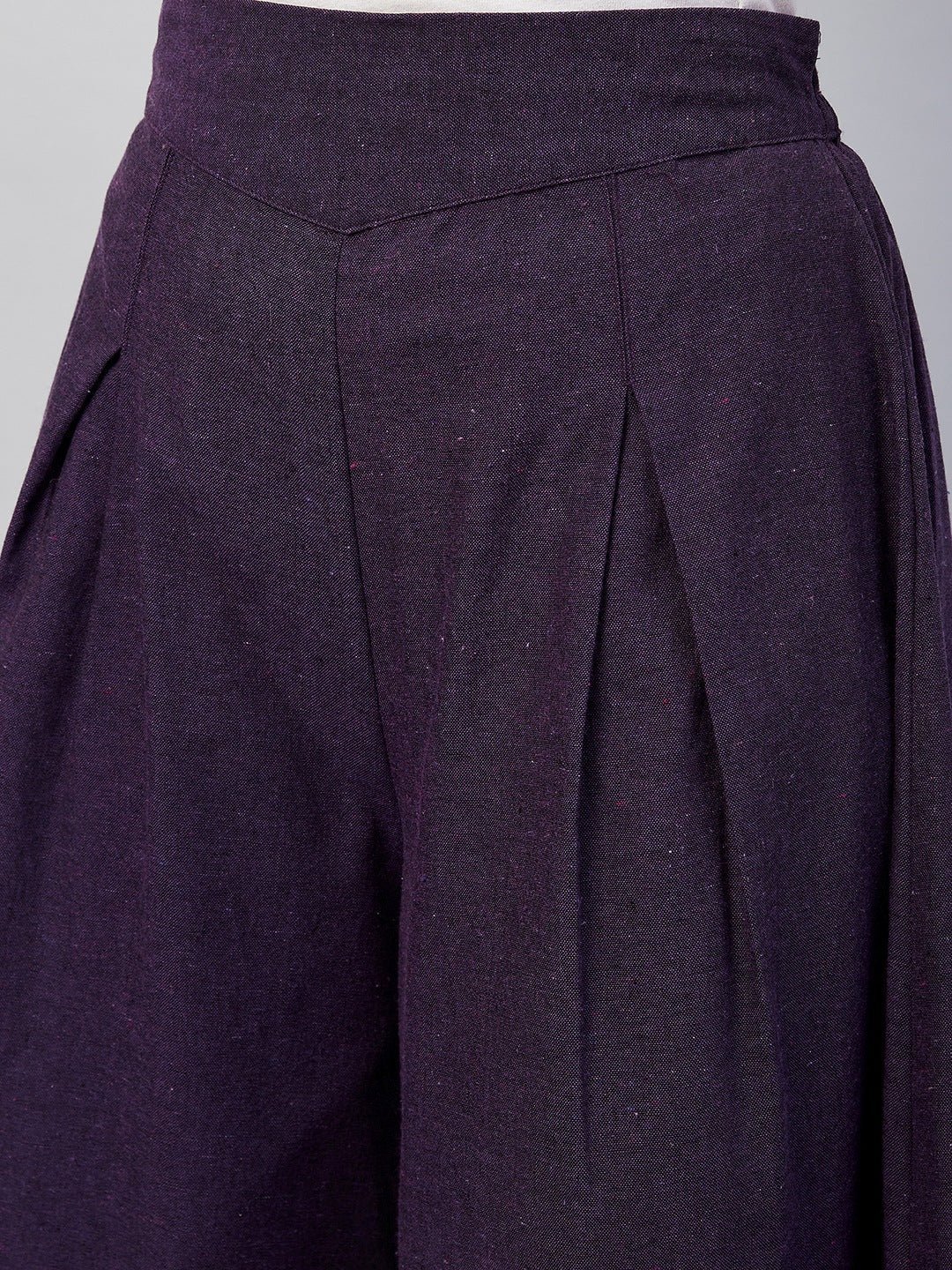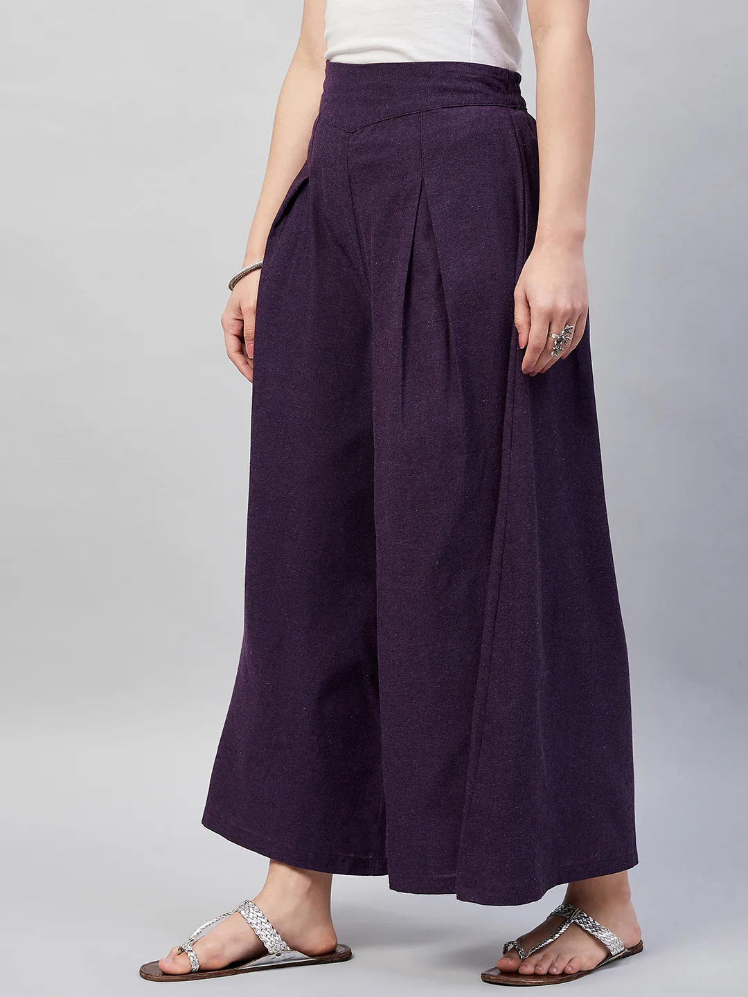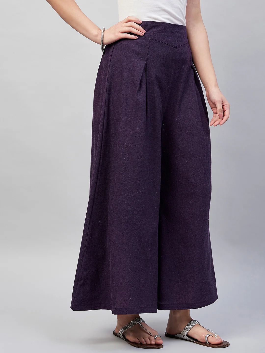 Embrace the spirit of summer with this pair of cool, gray-colored handloom palazzos. These cropped palazzos are made with original cotton fabric and showcase pretty front pleats.