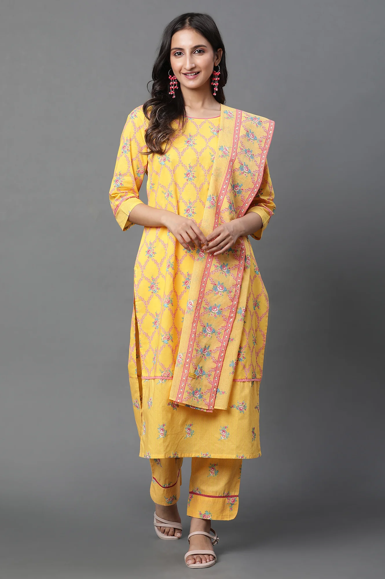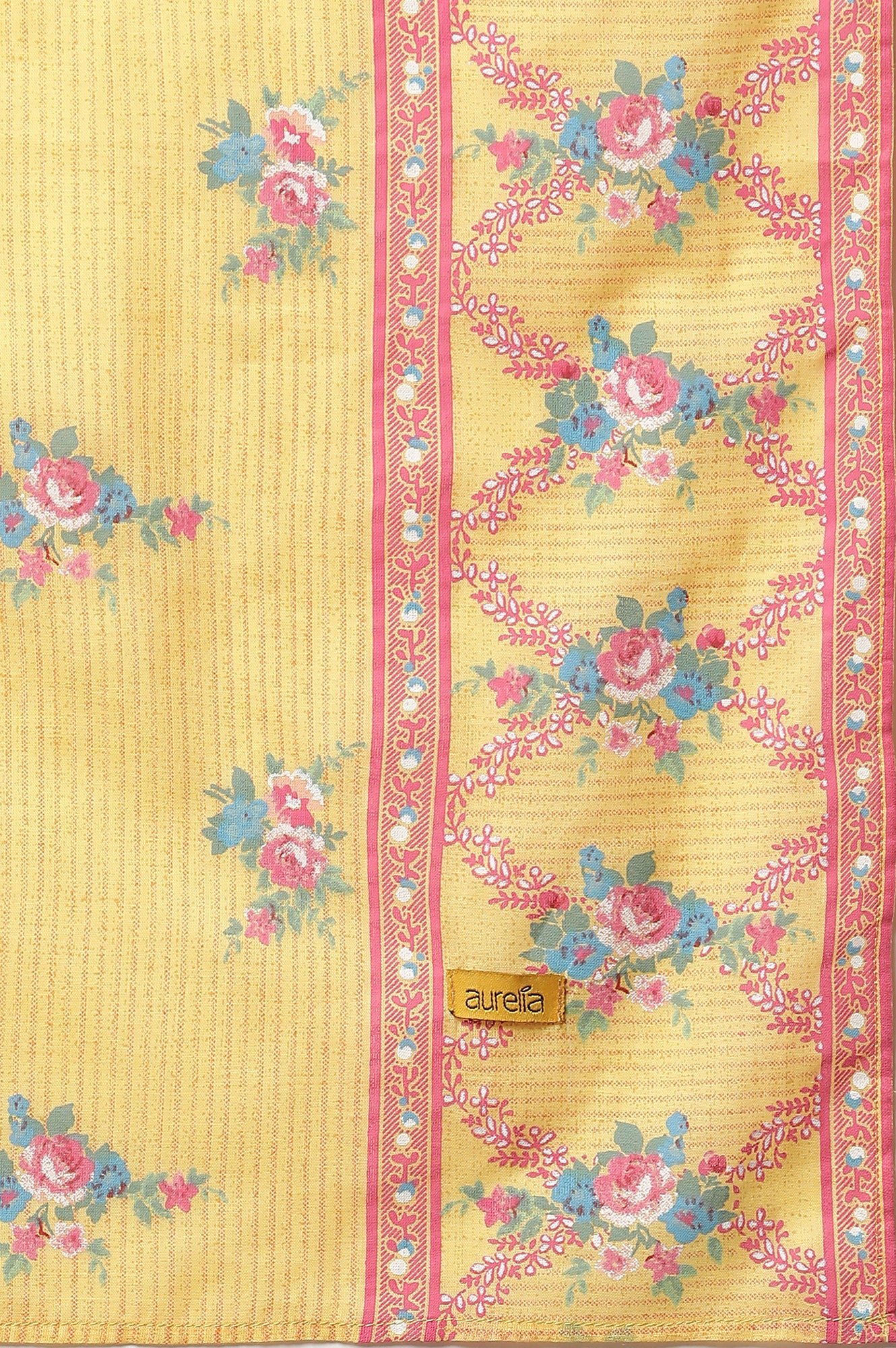 Yellow Floral Printed Cotton Dupatta